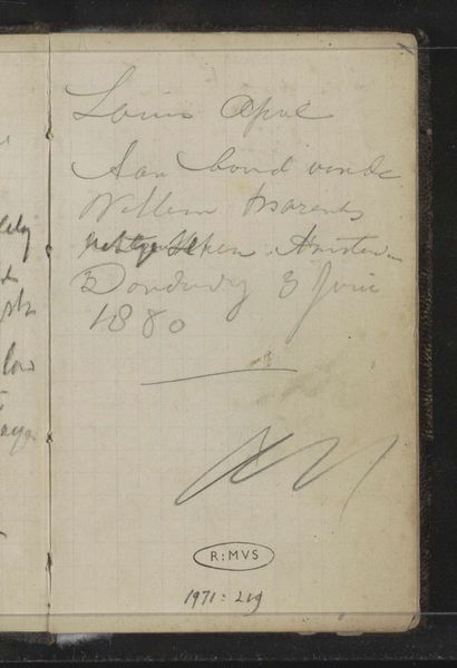 Curator: Here at the Rijksmuseum, we have "Annotaties" by Louis Apol, a drawing created around 1880. It appears to be graphite and pastel on paper, and its… well, its appearance is rather unassuming at first glance. What do you make of it? Editor: It looks like someone's handwritten notes, faded and overlapped on the page. It has a quality of ephemerality; it makes me feel as if I have found a page in an old book tucked away somewhere. But is there something beyond this surface that might suggest significance to the artist, Apol? Curator: Given that Apol was known for his landscape painting, this little study could easily be overlooked. But for an artist primarily capturing scenes, words and letterforms must have been important too. Editor: Precisely. Lettering, and handwriting in particular, carries so much coded cultural and personal weight. These names, dates… even scribbles. Are these shorthand for places? For feelings? I want to interpret some hidden memory here. The loops and elegant signatures give the air of Romanticism, and their presence hints toward ideas that may have lived more robustly in the consciousness of the time. Curator: Absolutely. Looking closer, it appears as though this is some sort of list. You can decipher years like 1848 and 1903 among the various entries, with signatures overlaid by large loops that might have been someone acknowledging their visit at different locations across a given landscape during a period. Editor: That thought transforms the document for me. Like a secret code revealing a set of waypoints for the culturally aware! This resonates with older, deeper functions for written languages as having both practical uses, and spiritual connections for certain words which even had supposed divine origins at certain moments throughout time. Curator: The use of graphite and pastels softens the whole impression too, as though deliberately to not over-emphasize the value of any single inscription, giving greater overall prominence to the document itself. Editor: The translucence, in my opinion, works wonders. You begin to think, what kind of conversation may happen here? You’re essentially getting a cultural record across time that might connect various dots for any reader willing to analyze deeply. Curator: Fascinating! In short, a delicate glimpse into how letterforms preserve memories, both personally and collectively. Editor: I couldn't agree more. What a fantastic way to end this conversation on something beautiful!