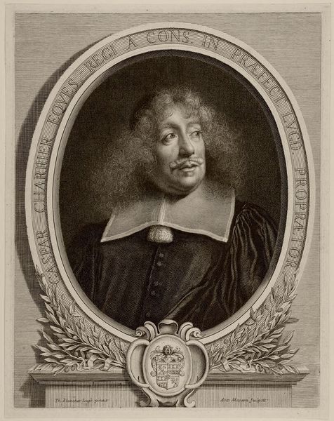 Editor: This is Antoine Masson’s portrait of Guillaume de Brisacier. The intricate detail in the engraving is striking. What stands out to you about its creation? Curator: Look at the labour involved in producing this print. Consider the engraver's skill in translating textures – hair, fabric – through meticulous lines. How does this process democratize image production and consumption compared to painted portraits? Editor: That’s a fascinating point. Thinking about who would have purchased this print changes my perspective. Thanks! Curator: Indeed, thinking about the means of its production shifts our understanding of its value and audience.