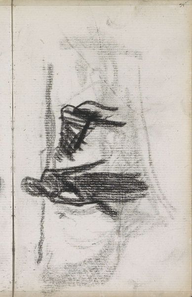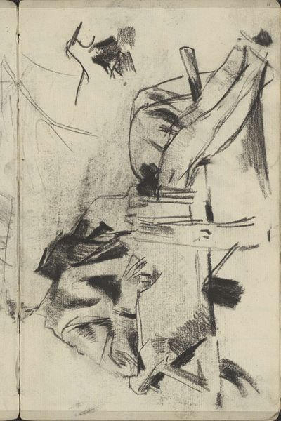 Editor: This charcoal drawing, "Two Young Women Looking over Their Shoulders," by Isaac Israels, made sometime between 1886 and 1903, has such a fleeting, informal quality to it. It feels like a stolen moment. How would you interpret this work within its historical context? Curator: It’s interesting you use the term “stolen moment.” That immediacy reflects a broader shift in the art world at the time, moving away from formal portraiture towards capturing everyday life, particularly in the context of rapidly changing urban environments. Israels, influenced by Impressionism, was interested in portraying modern life as it unfolded. Who was empowered to steal such a moment? And from whom? Editor: I see what you mean. It makes me consider who was given permission to have their likeness recorded. Are these women members of Israels's social circle? Or are they working class women he encountered and sketched? Curator: That’s exactly the right question to ask. Israels, as a member of the Hague School, was part of a broader movement towards realism and portraying different social classes, though his focus tended to be on a more bourgeois lifestyle. How do you see the composition contributing to this understanding? Editor: The unfinished lines and off-center framing, I think, make the subjects feel very alive and in motion. Almost as if the artist couldn't ask them to pose formally. I see a narrative forming through implication rather than detailed description. Curator: Precisely. The sketchy quality, combined with their gaze directed back at us, challenges the traditional power dynamic between the artist and the subject. It prompts us to consider their agency. Is it truly fleeting, or a deliberate, perhaps subtly defiant, turning of the head? Editor: It definitely shifts my perspective thinking about their agency! I initially viewed the artwork as spontaneous, but seeing how the artist was framing it through class and cultural perspectives makes it feel a lot more complicated. Curator: Indeed. That's the beauty of art history – uncovering those layers.