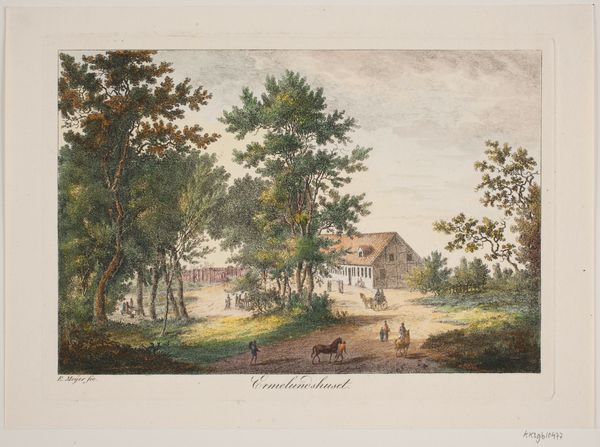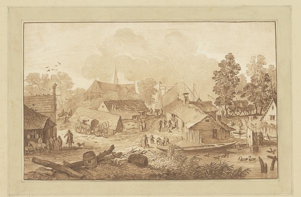 Curator: The artwork before us is entitled "Gezicht op een Nederlandse nederzetting in Indonesië," or "View of a Dutch Settlement in Indonesia," created sometime between 1843 and 1845 by J. G. van der Does. It’s rendered delicately in watercolor. Editor: It strikes me as strangely…quiet. A stillness that’s almost unsettling. The watercolor lends a softness, a sort of dreamlike quality to a scene that, knowing history, likely wasn’t so idyllic for everyone involved. Curator: Precisely. Watercolors, popular for their portability, were often employed by artists documenting landscapes and settlements. In this instance, we see the ordered layout of a Dutch colony, seemingly tranquil but pregnant with implied narratives of power. Look at the visual hierarchy; the imposing architecture set against the natural, less structured foliage. What could that imply? Editor: That tension is palpable, right? Colonial order imposed on the perceived wildness of the land. The buildings have this stark, geometrical presence that feels very much about asserting dominance. Yet, there’s a haze, a diffusion of light – almost a reluctance to show every harsh line. Like a dream one has about home. Curator: Indeed. The subtle use of color tells its own story. The greens and browns, although muted, give life, while the white of the buildings, under the tropical light, might denote not only cleanliness and order but perhaps also a visual statement of difference, a symbolic marking of foreign presence. Editor: And did they use local resources, the landscape for the building's placement in particular, in creating the Dutch imprint, or did they stick solely to home design aesthetics? Curator: It’s difficult to determine, perhaps impossible in such a work. The aesthetic certainly leans heavily toward European models and perspectives. Editor: Yes, you are right. The detail in the architecture, the strategic arrangement, they whisper stories of control and reshaping of space. Almost like etching your own memory onto a landscape that already held centuries of its own. It really is beautiful and quite thought-provoking, a mirror to the push and pull of seeing oneself in unfamiliar places. Curator: A delicate lens through which to view a complex, often brutal history. It's art that subtly confronts us with our own perceptions and preconceptions. Editor: Agreed. It makes you wonder whose perspective really gets etched into the grand narrative. Thanks for bringing this artwork to my attention. It has been an insightful analysis of memory, influence and change.