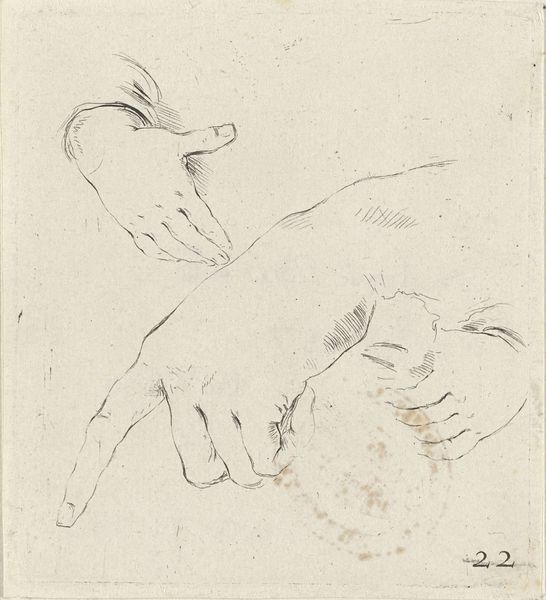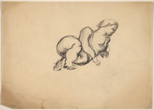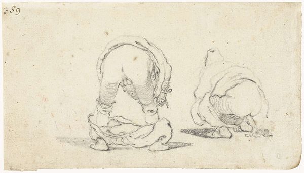 This drawing of a child lying on its back with legs up, was made by Abraham Delfos in the 18th century. The positioning of the child, vulnerable and exposed, reminds us of similar motifs throughout art history, particularly the Christ Child in Nativity scenes, often shown in swaddling clothes. Consider the infant Hercules strangling serpents; a divine child demonstrating superhuman power, a motif echoing back to ancient Egypt. This seemingly simple drawing connects to a lineage of images of infancy, loaded with symbolism of potential, innocence, and divinity. The vulnerability of the child engages the viewer on a deep, subconscious level, triggering primal instincts of protection and nurturing. The image also captures a fleeting moment of joy. This motif has resurfaced, evolved, and taken on new meanings in different historical contexts.