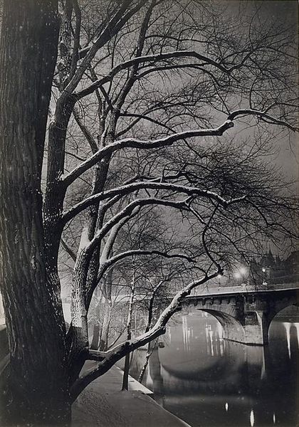Robert Frank’s photograph “Snow-covered tree--Landscape” captures a stark, wintry scene. Frank, a Swiss-American photographer, is best known for his raw, documentary style, which often reflects a sense of alienation and social commentary. In this photograph, we see a solitary tree, its branches bare and dusted with snow, set against a backdrop of bleak architecture. The scene evokes a feeling of isolation. The snow-covered landscape softens the scene and removes its details, while the bare tree reminds us of the fragility and resilience of life, even in the face of harsh conditions. The image may reflect Frank’s own experiences as an immigrant, navigating a new cultural landscape. His work often grapples with themes of outsider status and the search for belonging. Like much of his photography, this image is deeply personal, inviting viewers to reflect on their own emotional landscapes and the spaces they inhabit.