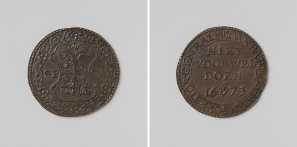 Editor: Here we have an engraving titled "Geboorte van Karel, erfprins van Engeland, Schotland, Ierland en Frankrijk," dating back to 1630. It's Baroque, made of metal, currently residing at the Rijksmuseum. What's striking is its stark utilitarian quality, almost mass-produced despite its ostensible commemoration of a royal birth. How do you see the function of such a piece? Curator: It's crucial to consider the context: metal engraving, in the 17th century, represents a specific mode of production and consumption. Rather than appreciating it simply for its artistic merit, think about the economic and social dynamics involved in its creation and distribution. Who was producing these engravings, and what purpose did this object really serve? Editor: So, less about celebrating Charles's birth, more about... circulating power? Curator: Precisely. Think about the labor invested in the metal work and engraving itself – what were the working conditions like for those crafting these objects? How would such an item be dispersed in a period lacking mass-media technologies as we know them? These factors speak to the intended function and demonstrate a network connecting artisans and consumers alike. It transcends the intention, it’s an early mechanism for shaping popular opinion through material means. Editor: That’s a compelling perspective; it highlights the societal undercurrents represented by even small commemorative objects such as these. Curator: The beauty of looking at art this way is we move past what we are told an object is ‘for’ and dig into what it really means and does in society. Editor: I see. Thanks, that gave me a lot to consider about artistic purpose and labor in the era!