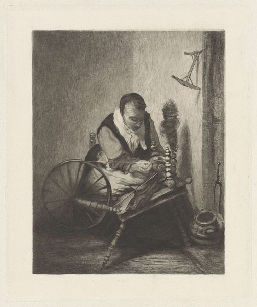 Jan Chalon created this print, "Man achter een bureau," in the Netherlands during the late 18th century. The image shows a man at his desk, absorbed in reading, perhaps a scholar or a clerk. During this period, the Dutch Republic had a robust literary culture and a high rate of literacy, especially among the middle classes. The presence of the printed word in daily life encouraged contemplation and the spread of new ideas. Institutions such as the universities of Leiden and Utrecht were important intellectual centers, fostering a culture of scholarship and debate. The man's clothing suggests that he belongs to a particular social class, probably educated and affluent. The picture embodies Enlightenment values of reason and knowledge, and emphasizes the importance of education and learning. To learn more, consider the histories of Dutch printmaking, Dutch trade, and Dutch intellectual life during the late 1700s.