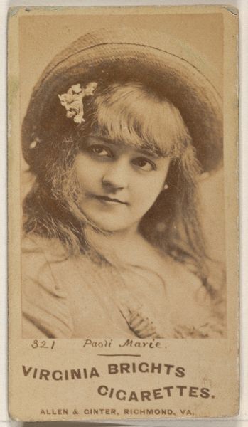 This card featuring actress Isabel Irving was made as a promotional item by Allen & Ginter for Virginia Brights Cigarettes. The image is printed on paper, a mass-produced material, using techniques of commercial printing that emerged in the 19th century. These cards were designed to be collected, traded, and consumed alongside the cigarettes they advertised, so the image of Isabel Irving would have been reproduced in vast numbers. The photographic print has a sepia tone, achieved through chemical processes that allow for replication on an industrial scale. This mechanical reproduction contrasts sharply with the hand-painted portraits of earlier eras, reflecting a shift towards mass culture and consumerism. The card’s inherent disposability is telling. It’s a reminder of the ephemeral nature of celebrity and the relentless cycle of production and consumption that defines modern life. By considering the materials and production processes behind this seemingly simple image, we gain insight into the social and economic forces that shaped its creation and reception.