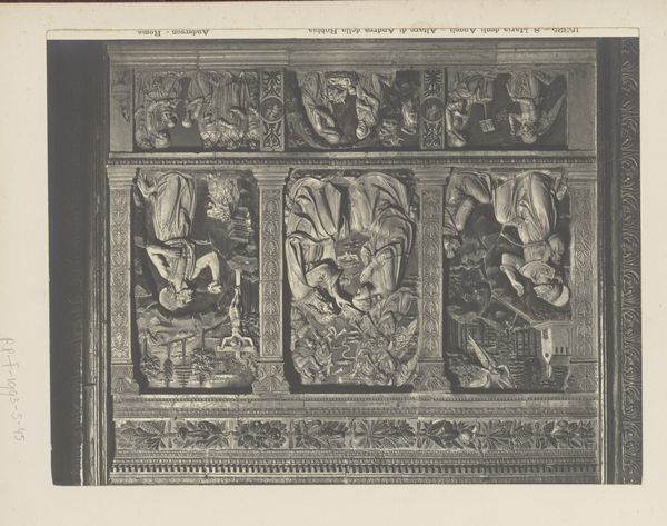 Editor: Here we have "Nehalennia-altaar, pl. VIII," an etching made between 1843 and 1845 by Tiemen Hooiberg. It depicts what appears to be three panels of Romanesque relief sculpture. The composition feels very formal and academic, almost like an archaeological record. What do you make of it? Curator: What immediately strikes me is the impulse behind recording these reliefs at this moment. The 1840s were a time of burgeoning nationalism across Europe, and with it, an intense interest in recovering and documenting local histories and artifacts. How does this impulse influence Hooiberg's artistic decisions? Editor: That's a fascinating point! So, you're saying it’s not just about representing the sculptures themselves, but also about contributing to a larger project of historical and national identity-building? Curator: Precisely. Consider the medium: etching, a process allowing for detailed reproduction, aligning with the scientific aspirations of archaeology at the time. And notice how Hooiberg meticulously renders the weathered surfaces, almost emphasizing their authenticity and age. Why reproduce these objects so faithfully? What role might the presumed “objectivity” of this printmaking medium have played? Editor: To give it authority? To convince the viewer that this is a truthful depiction of the past? It makes me think about who this print was intended for, and how it might have shaped their understanding of local history. Curator: Exactly! The circulation of these images played a crucial role in constructing a shared understanding of the past and its relevance to the present. Were these images used for scholarly study, or for broader public consumption, to instill a sense of civic pride? What might each tell us about the goals and desires of the Dutch state at that time? Editor: That really reframes how I see the image. It’s more than just a record; it’s an active participant in shaping cultural memory. Curator: Precisely. It's a reminder that even seemingly objective depictions are deeply embedded in social and political contexts. Editor: I hadn’t considered how the act of documentation itself could be a political act. Thanks, that's a totally different lens to view the image through.