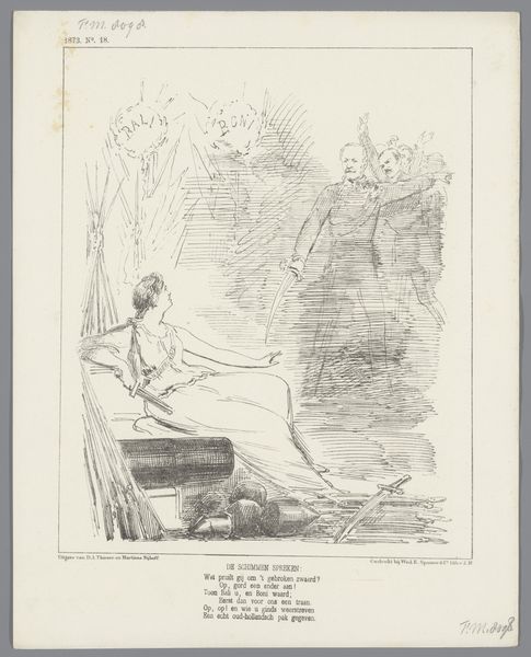 This print, made in 1870, depicts a courtroom scene related to the Dutch sugar trade and the debates surrounding it at the time. The Netherlands in the 19th century was deeply involved in the sugar industry, with colonies in the East Indies producing sugarcane. This image makes reference to the conventions governing the cultivation and production of sugar, implying that the topic was contentious at the time. The allegorical figure of Justice with scales is on the right. She makes a statement about sugar conventions in Europe. On the left are some lawyers. The text below the image translates to: "Dutch virgin: Remember, my gentlemen, that it is once again up to us to overshadow the rest of Europe". The print is interesting because it invites us to consider the social and economic impact of colonialism and trade policies. Art historians look into records of trade, colonial administration, and social movements to understand the artwork's social role, and how artists respond to socio-political issues through their art.
