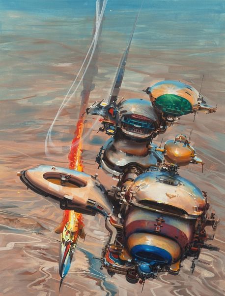 John Berkey painted "Up in Space," capturing a vision of futurism with oil. The structure, a towering spacecraft, embodies aspiration, reminiscent of ancient ziggurats aiming to bridge the earthly and the divine. Notice the window, a prominent oval suggesting an eye. Since antiquity, the eye has been a potent symbol of perception, knowledge, and spiritual insight. Consider its presence in Egyptian art as the Eye of Horus or its recurrence during the Renaissance as an emblem of divine omniscience. Here, the spacecraft is in a cosmic ocean with patterns like veins of the subconscious, reflecting our enduring fascination with the unknown. This dream of progress reveals our hopes and anxieties for the future. Though technology evolves, the human spirit remains tethered to age-old questions of existence.