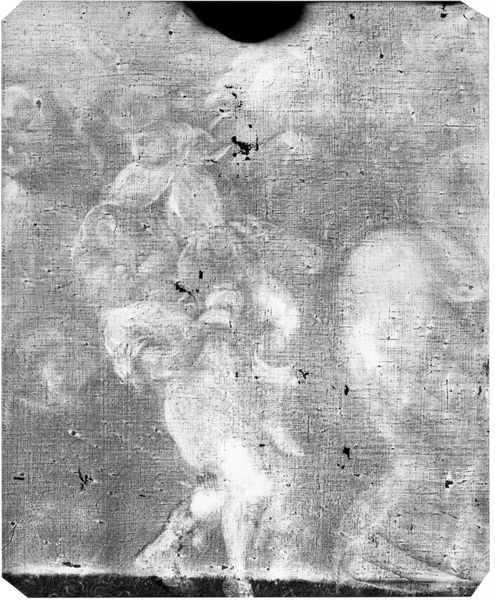 Editor: This is an X-radiograph of "Circumcision," by Willem de Poorter. The film is 14 x 17. It's interesting to see the painting like this, almost like an archaeological dig. What does it reveal about the painting and its history? Curator: X-radiographs let us see underlayers, revealing how the artist constructed the image. Does this glimpse behind the curtain change how we perceive the final artwork, and its narrative about ritual and faith? Editor: That's a great point. Does knowing about the underlayers change the meaning of the painting? Curator: It complicates it, I think. It makes us consider the artist's process, decisions, and perhaps even revisions driven by social or artistic pressures of the time. It also prompts us to consider the role of science in our understanding of art. Editor: That's fascinating! It really opens up so many questions about the artist and the context in which the piece was created.