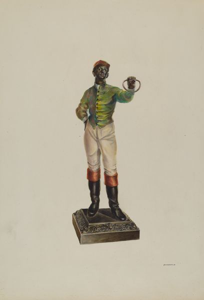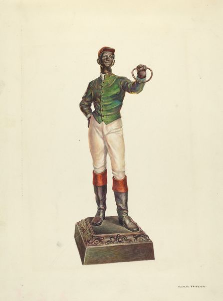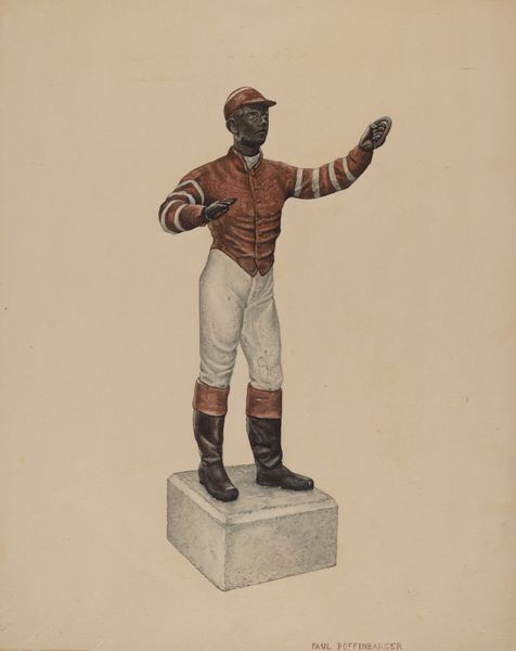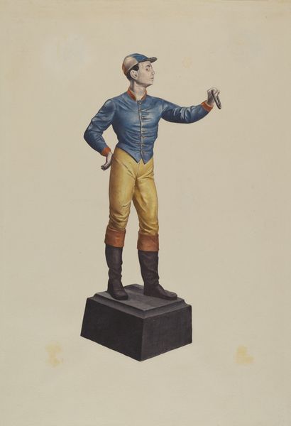 Dorothy Brennan gave us this image of a jockey with watercolor or gouache. It's all about process when you are working with these mediums - the paint dries so fast that you don't have a lot of time to deliberate. You can see in the jockey's pants there's a build-up of layers, maybe where Brennan had to rework the area, to get it just so. But the shirt looks like it was done alla prima, or all at once. This gives the figure a vitality, like the image was coaxed into being. I love the deep reds and browns, these earth tones that Brennan pulls from the figure, bringing him back to earth. The jockey looks like he has been brought to life from a statue, so perhaps Brennan was looking at sculptures for reference. It's possible to see the influence of Thomas Eakins here in Brennan's subject matter and realist style, although I feel like she gives her image a touch more humanity. Brennan shows us that art is about ongoing conversations, questions without concrete answers.