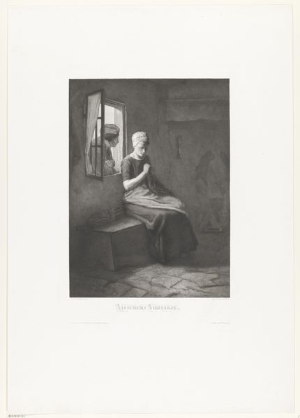 Johann Wilhelm Kaiser created this print, "Young Woman with Knitting," during the nineteenth century. The woman, poised in a doorway with yarn, is a humble representation of domestic life and a meditation on simplicity. Consider the thread she holds: a fine, delicate strand that extends to a ball on the ground. It’s a symbol reminiscent of Ariadne's thread, which guided Theseus through the labyrinth. Here, however, instead of navigating a monster’s lair, the thread signifies the connections of daily life and the quiet navigation of womanhood. Throughout art history, the act of spinning and weaving is connected with fate and destiny, from the Greek Fates to images of women at their looms in medieval tapestries. This simple scene is rich with the echoes of ages, reminding us that every act of creation is tied to a larger, timeless narrative.