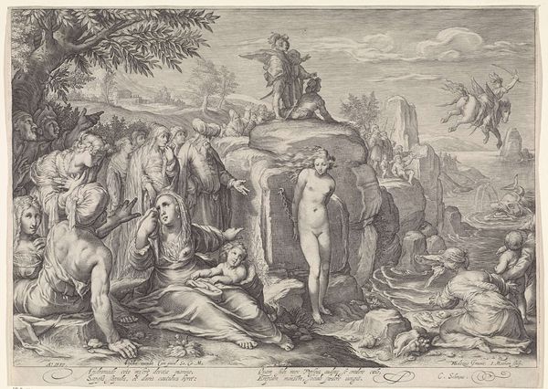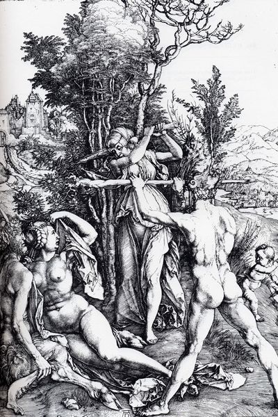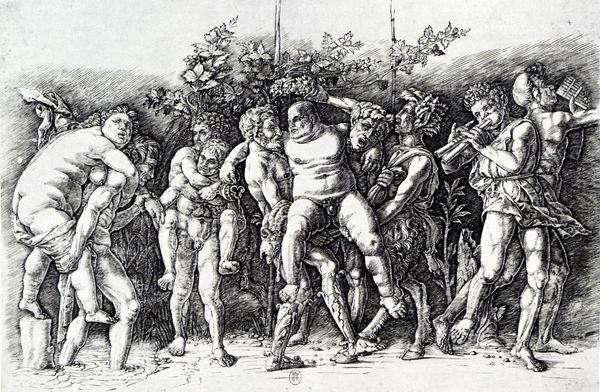 Curator: Standing before us is Edgar Degas' "Young Spartans Exercising," created around 1860. It’s a pencil drawing, now housed in the National Gallery, London. What are your initial thoughts? Editor: It feels so...stark. A muted palette, almost washed out. It evokes a sense of distance, not just in terms of perspective but also emotionally. The bodies appear vulnerable, despite their athletic stances. Curator: Precisely. Look at the production. Degas used pencil, a humble material, for what is essentially a history painting – blurring the line between sketch and finished work, challenging academic art's preference for oil. How does this inform your perspective? Editor: The "humble" pencil speaks volumes about the perceived value of labor, then and now. We're viewing an idealised, historical moment, but the very materiality questions the grand narratives often associated with history painting. Consider how notions of the nude intertwine with race and gender... Curator: A compelling reading! He focuses on the preparation for battle rather than battle itself. And the overt heterosexuality that it exudes! Editor: Yes, Degas seems particularly focused on this initial social interaction between male and female as well. The figures are positioned such that they are quite conscious and concerned of the reactions to one another’s physicality. And who do they perform this display for? In order to be seen by those that were closest to them as most suitable. Curator: Let us acknowledge then that this scene is taking place in ancient times where eugenics, physical expectations, gender norms and all these different factors would influence this historical setting. So much is presented, and the medium almost softens the aggressive intention, while simultaneously raising uncomfortable questions about societal ideals then, and, perhaps even now. Editor: Absolutely, it demands a constant questioning of our assumptions. I am challenged in turn by the questions this raises in both ancient historical societies and contemporary social behaviours that occur in social environments such as dating rituals. Curator: A powerful point to remember when encountering “Young Spartans Exercising.” Editor: It pushes us beyond aesthetics, and into complex territories of history, power and representation.