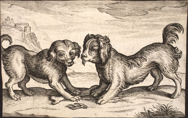 This watercolor, made by Aert Schouman, features a monkey contemplating a civet. The monkey’s posture, hand to its mouth, echoes the classical motif of the "pensive philosopher," a symbol of intellectual introspection. This gesture has roots stretching back to ancient depictions of thinkers and prophets, each contemplating the nature of existence. Consider, for example, Michelangelo's figures in the Sistine Chapel, where similar gestures denote profound thought. The placement of the hand to the mouth suggests not just thought, but also a degree of uncertainty or contemplation of the unknown. This same symbol appears throughout history, evolving through religious, philosophical, and psychological contexts. It reflects our continuous engagement with ideas of knowledge, self-awareness, and the mysteries of the world, revealing a deeper, subconscious connection. The emotional weight of the image lies in this silent dialogue, urging us to reflect on our place in the natural order.