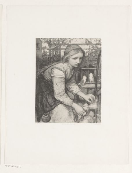 Fritz Boehle made this print of a maid feeding pigs sometime around the turn of the twentieth century. The image is rendered in a style reminiscent of earlier German folk art. Boehle, who was associated with several artists' colonies, portrays the rural life of the working class, specifically, the labor of women. The social hierarchy is apparent, the maid's labor directly supports the livestock, which in turn sustains the farm and its owners. Boehle's decision to focus on such a subject reflects a broader interest in the lives of ordinary people. This was a common theme in the art and literature of the period. To fully understand Boehle's print, scholars might research the social and economic conditions of rural Germany at the turn of the century, including the role of women in agriculture. This artwork provides insight into the social structure of its time. The study of art is always contingent on its social and institutional context.