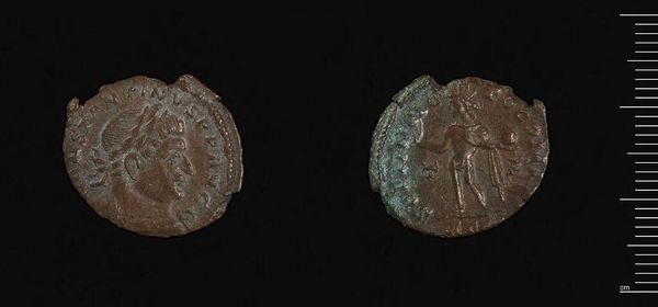 Editor: This is a Tetradrachm of Alexandria, made under Diocletian. What strikes me is the almost tactile quality of the corrosion on the surface. What can you tell me about this coin? Curator: Well, consider this object as a product of Roman imperial power. The metal itself, likely copper or bronze, would have been mined, smelted, and then shaped through labor. The imagery, the portrait of Diocletian and the figure with the scales, served a propagandistic function. Who controlled the mint, and therefore this production? Editor: Diocletian, of course! So, the coin isn't just money, it's a statement about power and control of resources. Curator: Exactly. The very act of minting this coin, the labor involved, and its subsequent circulation throughout the empire, speak volumes about the material realities of Roman rule. Editor: I never thought about a coin in terms of labor before. Fascinating! Curator: Seeing art through a material lens opens up new avenues for understanding its function and impact.