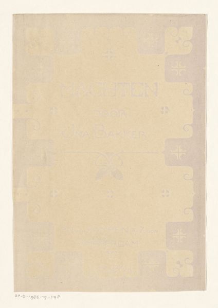 This cover design for a biography of Gerhard Moritz Roentgen was made in 1923 by Carel Adolph Lion Cachet. It's this incredible dance of purple lines on a creamy background, where the negative space feels just as important as the shapes themselves. Looking closely, you can see the texture of the paper peeking through the ink, reminding you of the handmade nature of the printmaking process. It's not about perfection; it's about the layering and the little imperfections that give it character. Notice the symmetry but then the subtle variations, like the slight wobble of the lines that keeps your eye moving. There is one stray mark, a little dash under the central cartouche which really humanises the work. Cachet’s style reminds me a little of Aubrey Beardsley, with that same love for intricate patterns and bold graphic statements. Ultimately, this piece is a reminder that art is always in conversation, borrowing and reimagining across time.
