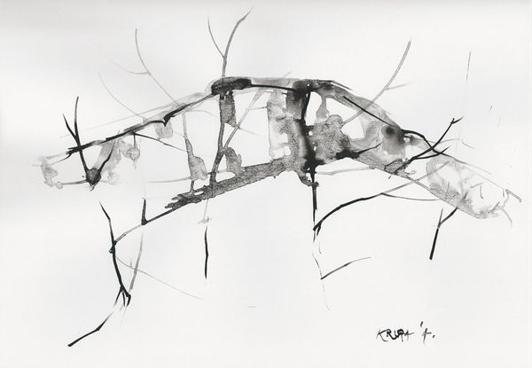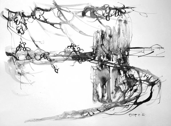 Curator: This is Alfred Freddy Krupa's 2019 ink drawing, "The old blanket, the wood and the young blonde of hidden identity due to the rapidly growing number of false moralists and clerics." It certainly presents a raw and somewhat frantic energy through its medium. What do you make of it? Editor: It's a pretty striking piece! I find it both chaotic and intriguing. The title is incredibly long, and the abstract form in ink, reminiscent of a tree perhaps, gives me a sense of…unease? Like something is being concealed rather than revealed. How do you interpret it? Curator: I find myself drawn to the process and the implied labor in its making. Ink, particularly in Eastern traditions, demands a certain spontaneity and precision. The frantic quality you observe might be less about unease and more about the artist's wrestling with materials and meaning within a specific social context. How might the "false moralists and clerics" mentioned in the title affect the availability or consumption of art supplies or subject matter, do you think? Editor: That’s interesting… perhaps the frantic energy stems from a kind of rebellion against those constraints? By obscuring the figure, is Krupa commenting on censorship, and perhaps the labor needed to fight against it? The materiality of ink here takes on a new weight – it's not just a medium, but a tool for resistance. Curator: Precisely! And consider the interplay between the ‘high art’ of drawing and the more utilitarian function of ink itself – a material historically tied to writing, record-keeping, and mass communication. Where does Krupa’s drawing fit in this spectrum? Editor: It blurs those lines, doesn't it? By using ink in such an expressive, rather than functional, way, the artist elevates its status and challenges our conventional understanding of drawing. I never considered the material carrying such a heavy meaning before. Curator: The power of art often lies in its materiality and the context in which it's created and consumed. Editor: This piece has certainly shifted my perspective on how materials themselves contribute to the message. Thanks for enlightening me.