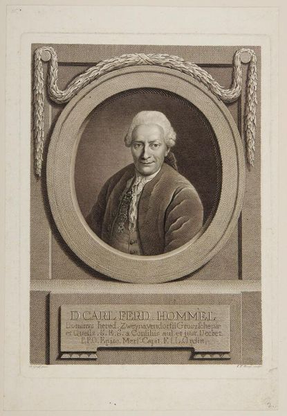 Editor: This is a portrait of Friedrich Siegmund Mangelsdorf by Amadeus Wenzel Böhm. The fine lines give the portrait a certain gravity. What do you see in this piece, that I might be missing? Curator: The precise lines speak to an era of enlightenment ideals, wouldn't you agree? Böhm captures Mangelsdorf's presence with such meticulous detail, almost as if he's inviting us to consider the weight of civic duty. Editor: That makes perfect sense! I hadn't considered the historical context in that way. Curator: Portraits like these were how society immortalized its leaders, showing them as both authoritative and approachable. It's an interesting balance, don't you think? Editor: Definitely! I'll remember that when I see another portrait from this time. Thanks!