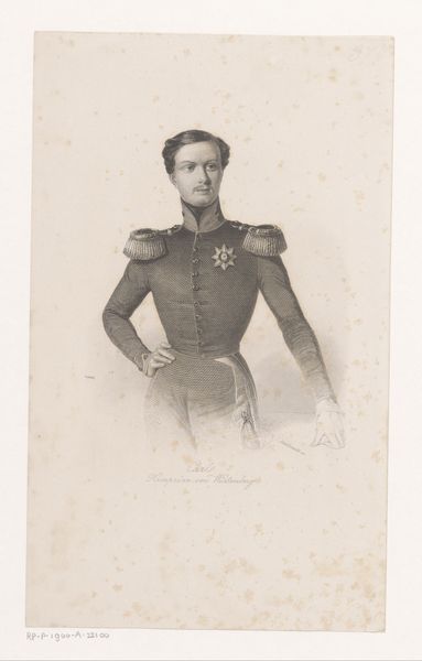 Editor: Here we have Heinrich Ditlev Mitreuter's "Portret van Nikolaj Nikolajevitsj Romanov," created in 1847 using engraving techniques. The formality of the portrait and his intense gaze create an aura of power. What strikes you about this work? Curator: Considering its context, this portrait speaks volumes about the construction of power within 19th-century Russian aristocracy. Notice how his youth is juxtaposed with the weight of his military attire. How does that tension contribute to your understanding of his position? Editor: It makes me think about the expectations placed upon him, and perhaps the sacrifices he might have had to make. Did art of this period often serve a specific political function? Curator: Absolutely. These portraits weren't just likenesses; they were carefully constructed statements. They reinforced the Romanov's legitimacy and projected an image of strength and imperial order to maintain social control and justify existing power structures. Do you see how the medium – engraving – itself contributes to this sense of authority and precision? Editor: Now that you mention it, the sharp lines do seem to emphasize control and exactitude. So, understanding the historical and social climate is key to interpreting this image beyond its surface? Curator: Precisely! It encourages us to examine whose stories are told, how they’re told, and whose perspectives are excluded. We must always question how art can either perpetuate or challenge dominant narratives of power, gender, and class. What narratives do you see being perpetuated in this engraving? Editor: I guess the story of male dominance, military strength, and unwavering rule...It’s been enlightening to consider the portrait not just as a representation, but as a complex symbol embedded within specific historical and social dynamics. Curator: Exactly, looking at art this way transforms the experience of understanding visual culture.