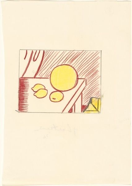 Editor: We are looking at a print by Vasile Dobrian titled "I Have Tried". It looks like it is an acrylic paint print from 1995. The olive background really makes the circular form jump out at you. What do you see in this piece? Curator: Immediately, the visual symbolism captures my attention. A circle, an ancient signifier of totality, the self, and cyclical time, is intersected by wavy lines in muted grey. These lines evoke the feeling of restriction or imposed limit upon the completeness. The title, “I Have Tried”, amplifies this; do you feel a sense of conflict here? Editor: Yes, there is a real tension. The circle feels energetic and vibrant because of that yellow, but then it's almost stifled by those grey horizontal shapes and the muted green. The overall mood feels unresolved. Curator: Indeed. The work seems to exist in the realm of memory – the olive background and yellow circle can also represent faded experiences. It speaks to a universal human experience. What about the “trying” part? Editor: Maybe it’s about how we are constantly trying to define ourselves, or maybe how we can only achieve limited self-expression. Like, our true selves, represented by the perfect circle, always run into boundaries we can’t overcome. Curator: Precisely! And by placing these universal ideas of the self within abstract geometry, Dobrian invites each viewer to explore their individual limits and interpret their personal struggle within these basic shapes. Is that what you see here? Editor: Yes! I didn’t notice all of that at first glance, but I'm glad that I understand it better now. The image has become even more powerful to me. Curator: It's amazing how seemingly simple forms can carry such profound cultural and personal weight. A testament to the artist's vision and a mirror to ourselves!