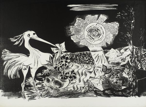 Editor: Here we have Frederick Sommer’s "The Queen of Sheba," created in 1992 using mixed-media collage and print. It’s…striking. The composition is dense and the imagery is, well, intensely biological. There’s a dreamlike quality to it, but also something unsettling. What do you see in this piece? Curator: The initial impact, I agree, is arresting. Sommer constructs a symbolic landscape that marries the organic with the mythic. The Queen of Sheba, historically associated with wisdom and opulent journeys, becomes a figure embedded, or perhaps even composed of, dissected anatomical studies. Do you see the repetition of the eye motif, both as an anatomical illustration and perhaps as a knowing gaze? Editor: Yes, definitely. It’s hard to miss! Are you saying the "Queen" is not a portrait of a person, but an assemblage of perspectives, both literal and figurative? Curator: Precisely. Think about the tradition of anatomical illustration. Its initial purpose was clinical objectivity, yet Sommer repurposes these illustrations. They're imbued with subjectivity, with a dream logic that connects inner bodily landscapes with the external world, thus, memory and even societal evolution. The piece carries echoes of Surrealist collage, but also speaks to something deeper – our persistent effort to reconcile the rational with the mystical. How does that symbolic dissonance sit with you? Editor: That tension is what I find so compelling. It challenges my expectations. It’s not just beautiful or grotesque; it’s both. Curator: And in that contradiction lies its power. Sommer encourages us to confront our own inner workings, both literally and figuratively. Through the familiar symbolism, in his art we are beckoned into contemplation of hidden meaning. Editor: I hadn’t thought about it that way, but that really deepens my understanding of the work and I see all the multiple, potential readings within. Curator: Indeed, and perhaps that is where the art and alchemy converge, in the creation of gold from the most unlikely matter.