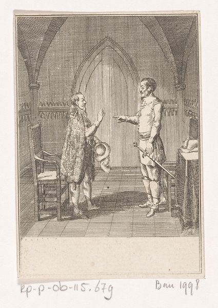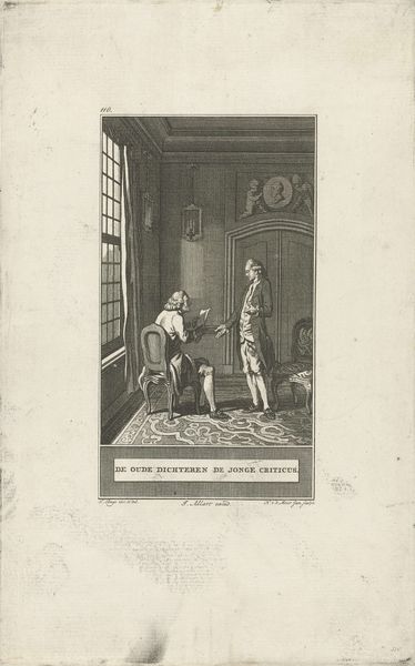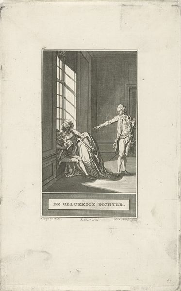 Noach van der Meer the Younger made this print, "Philinde en haar broer," in the Netherlands, at a time when the Dutch Republic was beginning to give way to new political realities. The scene depicts a brother and sister in what seems to be a moment of tension or revelation. To understand this image, we need to look at the cultural codes of the 18th century, when social status dictated everything from fashion to interior decor. The setting suggests a wealthy household, but the drama hints at underlying social pressures, perhaps related to family expectations or gender roles. This print offers a glimpse into the power dynamics of its time. As historians, we consult sources like conduct manuals, fashion plates, and domestic inventories to decode its meaning. The image becomes a valuable document, reflecting the values and tensions of a society on the brink of change.