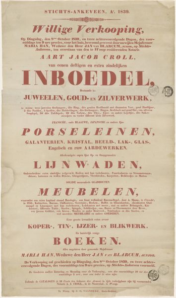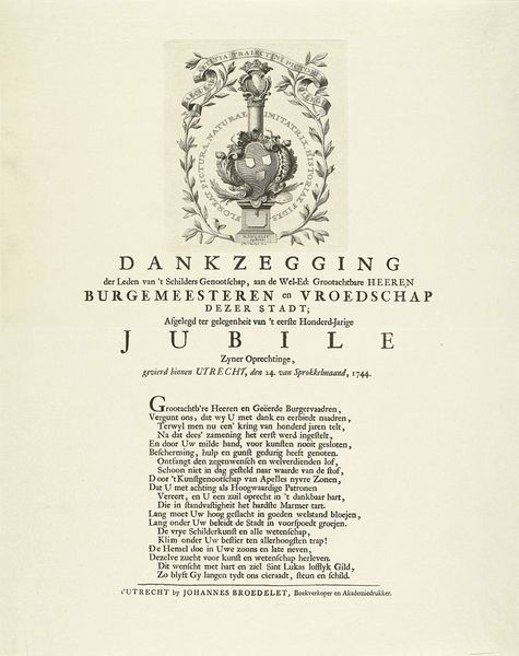 Curator: Let’s turn our attention to this intriguing title page, dating from 1824. It announces Jan Smits’s "Verhandeling over den alouden staat, de eerste bevolking en vroegste geschiedenis van Zuid Holland…en van de stad Dordrecht in het bijzonder," printed in Dordrecht. It’s a printed work, typography on paper. Editor: You know, it gives off this old, scholarly vibe, almost like uncovering a forgotten map. The way the words are laid out—it’s got this formal balance but it’s also incredibly detailed; like a promise of the knowledge contained inside the treatise. A bit imposing, but beckoning, if that makes any sense. Curator: I find the deliberate arrangement of the typography to be of significance here. Observe how the hierarchy of information is meticulously conveyed through variations in font size and weight. "Verhandeling" dominates the upper register, setting the tone. Below that, gradations lead the eye down to Smits’s name. The interplay creates visual harmony that directs the viewer’s interpretive path. Editor: Yes, that descending order of emphasis works wonders—a verbal cascade! "VERHANDELING" grabs your eye as the statement, "Zuid-Holland" focuses it on the subject, and "Dordrecht" grounds you to the location of creation. It makes you curious about both grand history and specific local details, doesn’t it? Curator: The materiality contributes to the overall impact as well. The paper, while aged, possesses a certain textural quality. The ink, though faded in areas, reveals a certain depth that enhances its legibility. Editor: I see your point, absolutely. It reminds me of when I went through old family papers and found my great-great-grandparents’ wedding certificate. This paper whispers stories...of revolutions brewing, discoveries waiting, of the weight of history bearing down. Do you agree with that sort of atmospheric sensation that permeates these early texts? Curator: To an extent, however it remains vital to maintain analytical distance, emphasizing the objective interpretation, while acknowledging an affective connection of course. In observing the print's construction, one detects intention and structure rather than romanticized notions. Editor: Fair enough! All this attention to lettering gives you a serious hankering to dig through the dusty old libraries though, no? A window onto history indeed.