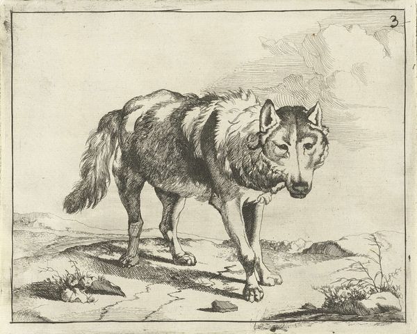 This is Antonio Tempesta's "Bever", an engraving made sometime between 1575 and 1630. Notice how Tempesta's use of line dominates the image. The density and direction of these lines create textures that define the beaver's fur, the scales on its tail, and the vegetation underfoot. The beaver's pose is striking; it’s caught mid-action, mouth open, seemingly caught between aggression and defense. What does this choice tell us? Consider the era in which this image was made. Natural history was intertwined with moral lessons, and animals often symbolized human traits. The beaver, known for its industriousness, might be seen as an emblem of diligence, or perhaps its territorial stance represents vigilance. The formal choices—the dynamic pose, the intricate linework—elevate the animal beyond mere representation. Tempesta uses these elements to suggest a broader narrative, inviting us to contemplate the beaver's place in the natural order and its symbolic role in human understanding.