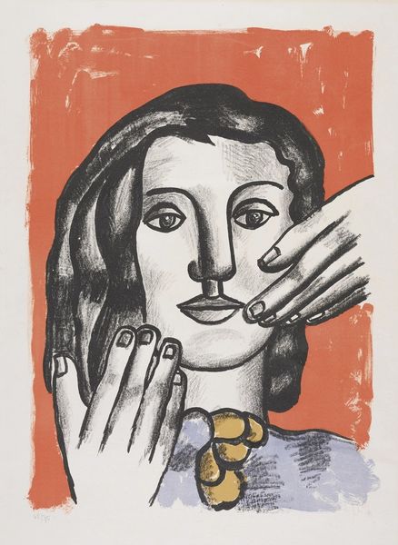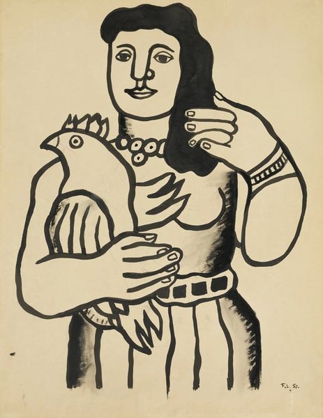 Editor: Here we have Fernand Léger’s “Fêtes de la faim,” created in 1949 using ink. It's a rather striking black and white drawing. I'm immediately drawn to the figure’s hand; it's so prominent and stylized. What are your thoughts when you view this work? Curator: Considering Léger’s context, post-war France grappling with scarcity and industrialization, I see a deliberate engagement with materials and production. The starkness of ink on paper points to an economy of means. Léger wasn’t just depicting "famine celebrations", he was also confronting the realities of labor and resource allocation through this artistic *production.* Look at how the figure seems constructed, almost manufactured, hinting at mass production. What about that aesthetic strikes you? Editor: It’s interesting that you point out the "manufactured" aspect. I hadn’t considered it in terms of mass production but I see that in how blocky and simplified everything is. The process, using only black ink, does seem to reinforce the sense of limited resources. What does it tell us about class or social structures at that moment? Curator: Precisely! The limited palette speaks to a specific segment of the population and perhaps challenges conventional "fine art" expectations through accessible materials and directness. Where do you think this piece would find its home and with who at the time? Would it hang in some wealthy house, or would its material and message imply another function? Editor: I suppose the inexpensive materials suggest wider accessibility, maybe prints for the working class conveying some sort of social message rather than expensive, one-of-a-kind display pieces for the elite. It’s quite impactful to think of its potential function and viewership that way. I never really considered its initial distribution to be that relevant before. Curator: Thinking about art as a product with intended markets certainly opens things up. Editor: It absolutely does! Thank you for shining some light on that.