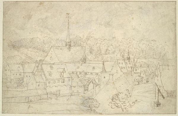 Robert Austin created this sketch, "Study for 'The Angelus'," using graphite on paper. It offers us a glimpse into the detailed preparation behind his more elaborate engravings. Austin, who lived through both World Wars, often depicted pastoral scenes, perhaps as a way to explore ideas of peace and the timelessness of rural existence. In this study, we see a village dominated by its church, a symbol of community and tradition. The sketch has a quiet, contemplative feel, inviting us to reflect on the simple rhythms of life. Consider the role of religion in shaping social structures and individual identities. How does the prominence of the church speak to the values of this community? Austin's careful linework and composition evoke a sense of nostalgia, yet also perhaps a longing for stability in a rapidly changing world. It prompts us to consider how we find solace in the familiar.