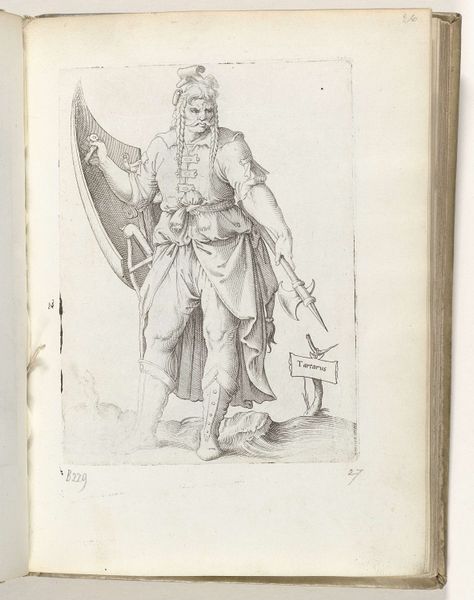 This is Fernando Bertelli's etching of a "Tartar Warrior," housed in the Rijksmuseum. Note the formidable figure stands amidst turbulent waves, clad in armor and wielding a halberd. Behind him, a shield hints at both defense and the readiness for conflict. The image of the warrior can be traced back to classical antiquity, embodying strength, courage, and the readiness to defend one's people. We see this archetype echoed across cultures, from the heroes of ancient Greece to the knights of the Middle Ages. However, here the figure is labelled as 'Tartar'. Consider, too, the symbolism of the sea. Often representing chaos, the subconscious, and the unknown, here it mirrors the turmoil of the warrior's world. This primal connection with the forces of nature evokes a deep psychological response, tapping into our collective memories of struggle and survival. This cyclical progression transcends mere illustration, resonating instead with a primal, timeless narrative of human resilience and adaptation.