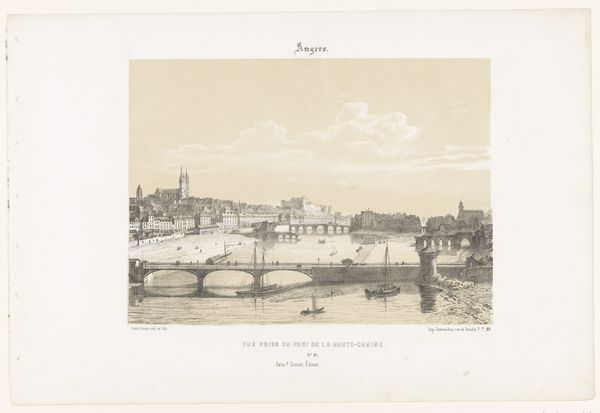 Léon Auguste Asselineau created this print of the castle and the Pont de la Rotonde over the Loire in Nantes, using etching. Immediately, the ordered, pale monochrome draws the eye. The symmetrical balance in the buildings is stabilized by the soft, organic textures of the water, the foliage, and the sky. Look closer: the composition guides us from left to right, starting from the figures, to the bridge. It is almost a semiotic system, each stroke a signifier in a larger cultural discourse. The texture of the buildings contrasts with the flowing river, hinting at a tension between nature and man's imposition on it. The perspective is carefully constructed, with lines converging to create depth, and inviting the viewer into the scene. Consider the etching technique. The fine, precise lines add to the structured feel and speak to the artistic values of clarity. This structured harmony invites us to engage in an ongoing dialogue with history.