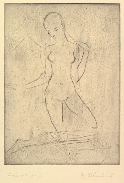 Curator: Let's turn our attention to Georges Seurat’s "Study after 'The Models'," created around 1888. He employed pencil and perhaps coloured pencil on paper for this work. Editor: My first thought is how delicate and ephemeral it seems, almost like a fading memory captured with the subtlest touch of the pencil. I’m drawn to the pointillist texture. Curator: Indeed. While famed for his pointillist paintings, Seurat was a master of conté crayon and pencil, showcasing incredible command over tone and texture. This study offers a glimpse into his working methods, providing insight to the production of art and highlighting how academic skills in the life-drawing enabled future creativity in Seurat. Editor: I'm fascinated by how the labor intensive methods work across mediums. It challenges these categorizations to see Seurat bring an analogous, dot-like facture in drawing practice to pointillism, most known in painting. Did these life models work for other neo-impressionists too, and what were their wages? Curator: Records about the specific models' compensation during that era remain scarce. Nevertheless, we see that Seurat challenges traditional figure drawing, by pushing tonalism towards neo-impressionist practices of painting in line with his fellow members such as Paul Signac. It makes me wonder how such artistic groups shaped labor demands in studios at that time. Editor: Well said, but also worth mentioning is that, through materiality we recognize this "Study"’ as an artistic product, which might challenge assumptions of ‘fine art’ versus preliminary sketch that seems essential for all media of work production. The cross-hatching here mimics color mixing—interesting in comparison with paint, yes? Curator: Absolutely! The materiality pushes the boundary, leading us away from purely formal consideration, acknowledging that Seurat’s practice itself involved studio arrangement and marketing practices during a very important art historical moment where academics were redefined Editor: This has pushed my thoughts too. I look with newfound admiration seeing Seurat’s labour to create what looks minimal now. Curator: A study not just of form, but also a window onto a transforming world of artistic labor.
