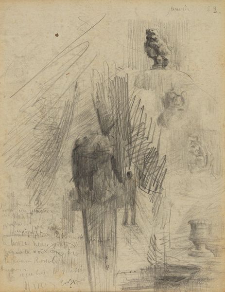 Curator: Cornelis Vreedenburgh created this pencil drawing sometime between 1890 and 1946. It’s called “Open Havenfront met de Schreierstoren en Nicolaaskerk.” Right now, it resides here in the Rijksmuseum. Editor: My first thought is vulnerability. It feels transient, like a quickly jotted memory on the brink of fading away. The light seems so… fragile. Curator: I get that sense too. The loose lines certainly give it a fleeting quality, capturing a specific moment rather than a lasting monument. Perhaps the precarity of memory resonates strongly with me at the moment. Editor: It also prompts me to consider who is granted the power to record and remember within a community, as well as the perspective from which that story is told. Vreedenburgh seems to present the city with such an intimacy in these fluid, graceful pencil strokes, what exactly were they hoping to remember and make clear about Amsterdam? What position did the people have who he sought to depict? Curator: That’s a crucial lens through which to see this work. Vreedenburgh captures a reality shaped by unequal access and unequal power dynamics. Did they capture their resilience and agency? Editor: Precisely! Also, beyond the cityscapes themselves, these visual records of daily life shape our collective historical imagination. How do we challenge that established imagery? Is it too late to consider alternate versions or to push it beyond a more representative depiction of humanity as a whole? Curator: Food for thought! I wonder about that stain, too. Accidental beauty or some hidden meaning embedded by the artist, intentional or not? We will never know! Editor: Exactly, the intentional and unintentional all come together here, right? Ultimately, that sense of openness that really lingers for me. It becomes more powerful, really, when thinking about historical omissions. Curator: You’ve opened my eyes to seeing the quiet power embedded in those perceived silences. Editor: And you have reminded me of the subtle ways beauty can exist in those ephemeral moments.