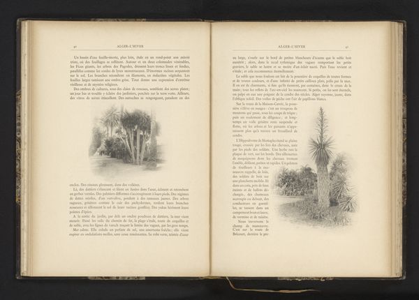 Editor: Here we have "Cocoanut palms, Woodlands," a photograph, dating to before 1884, by James H. Stark. What strikes me first is the almost silvery quality of the print and the carefully arranged cluster of palms. What do you see when you look at this image? Curator: Primarily, I observe the compositional choices. Note how the photographer has structured the arrangement of the palm trees. The stems create a set of parallel verticals, truncated at differing heights by the image frame. This generates a visual rhythm, echoed, yet complicated by the fronds themselves. Editor: That's interesting. So you're focusing on the geometry of the forms and their relationship to one another. The photographer really embraced a formal approach, don't you think? Curator: Precisely. Further examination reveals a study in tonal variation. Note how the diffuse light allows subtle modulations in the mid-tones, adding depth and dimension to the scene, and consider the effect of the limited greyscale. Is this, in your opinion, an effort to replicate, say, the picturesque landscape painting conventions in the relatively new medium of photography? Editor: Hmm, that's a good question. It definitely encourages us to look closely at the inherent properties of photography itself as a medium. It feels like an investigation into the possibilities of form. Curator: Indeed. Through the ordered arrangement of the palms and a sensitive manipulation of tone, Stark asks us to engage with the intrinsic language of photography. What does such careful framing communicate to a contemporary viewer? Editor: Well, it emphasizes that the image is constructed. I think I’ll look at early landscape photography differently now, thinking about the choices involved in creating the image itself, beyond simply capturing a scene. Curator: Exactly. Sometimes, looking closely at what’s on the surface can reveal much more than expected.