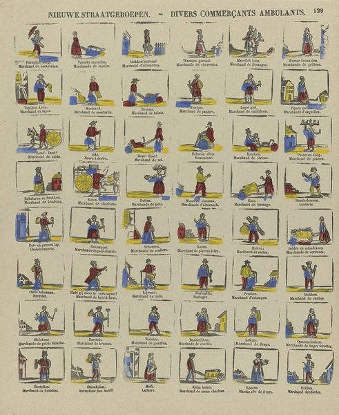 "Kinder oefeningen", or "Children's Exercises," is an undated print made by Glenisson & Van Genechten, presenting a grid of small scenes. These scenes depict children engaged in play and domestic activities that reflect the social values and expectations of the time. The activities, rendered in simple lines and muted colors, offer a glimpse into the gendered roles children were expected to adopt. Boys are shown in active, outdoor pursuits, while girls are often depicted assisting with household chores. This imagery subtly reinforces societal norms, framing childhood as a training ground for adult responsibilities. The emotional resonance of this piece lies in its quiet depiction of everyday life, inviting us to reflect on how concepts of childhood and innocence are shaped by cultural forces. Does this depiction of childhood maintain traditional representations or develop alternative narratives? The artwork certainly prompts consideration of how societal expectations are communicated and internalized from a young age.