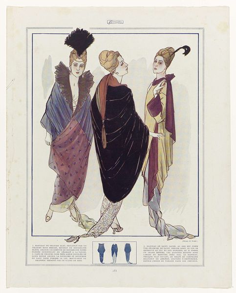 Editor: This is a lithograph poster entitled "Ault and Wiborg, Ad. 042," made sometime between 1890 and 1913 by Jules Chéret. I’m immediately drawn to the figures – they seem so full of life and energy, especially with those bright colors! How would you interpret the significance of these figures, particularly the woman in yellow and the clown? Curator: Well, it’s important to understand Chéret's role in shaping visual culture. He really elevated advertising to an art form. The woman in yellow embodies the Belle Époque: a symbol of beauty, freedom, and joy that was very new at that time. Think of her as the ‘new woman’ – confident and liberated. Now, about the clown… Where do clowns usually appear? Editor: Entertainment, circuses, theater... Curator: Exactly. They act as a sort of cultural shorthand. A reminder that advertisements – even for something like printing inks – are inherently theatrical, a performance designed to capture our attention. Notice how all figures draw attention to the printing example that they all hold. Does this link to ink surprise you? Editor: That is a fresh perspective! I never really looked at advertising as such a multifaceted art before, carrying this many layers of symbolic language and meaning. Curator: Right, the advertisement doesn't exist in a vacuum, right? Chéret masterfully blended commercial interests with artistic expression and cultural context. This allowed symbols, familiar to anyone walking around at the time, to deliver its core message. Editor: I see it now. So, these images work together, giving not only name recognition, but also reflecting aspiration and progress of their time. It’s not just about ink anymore! Thank you! Curator: Precisely! Thinking about this poster through the lens of visual and cultural symbolism expands our understanding, wouldn't you say?
