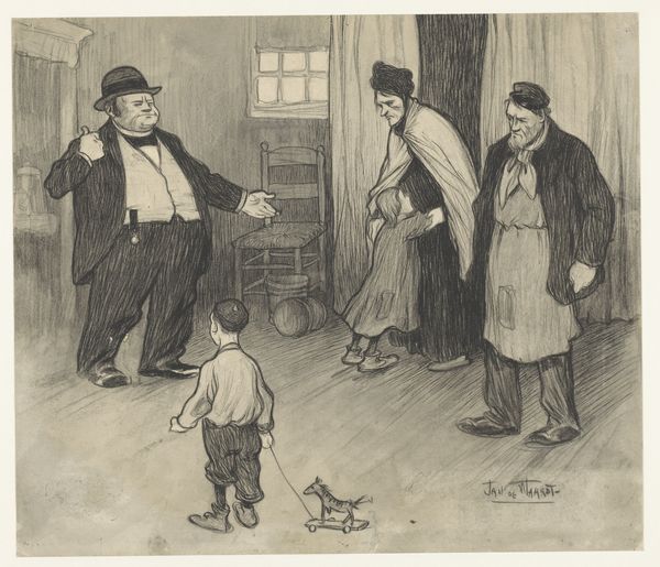 Gillis Bernhard Mulder made this pen drawing, Verstopte jongen wordt ontdekt, which roughly translates as Hidden Boy Discovered. I love the economy of line here. Each stroke feels incredibly deliberate, building up volume and texture with such precision. It’s like watching a master sculptor at work, but with ink. The scene unfolds in a domestic interior, animated by the discovery of the hidden boy. Look at how Mulder varies the density of his lines to suggest light and shadow, creating a real sense of depth. The dog in the foreground, with its eager posture and carefully delineated fur, is a highlight for me. The texture is palpable, achieved through a beautiful layering of short, sharp marks. This piece reminds me a little of Honoré Daumier, with its focus on everyday life and its sharp social observations. But Mulder brings his own unique sensibility to the genre, creating a drawing that is both technically accomplished and deeply human. It’s a drawing that understands that art is as much about hiding as it is about revealing.