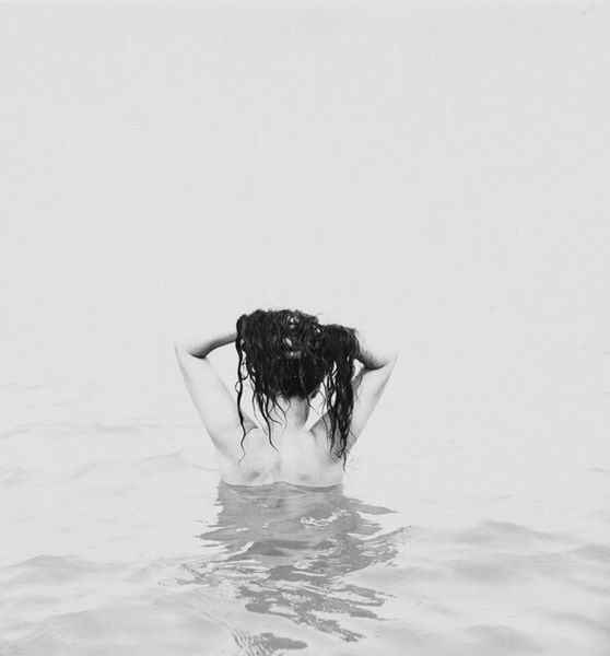 Editor: This is a small, undated photograph by Lucian and Mary Brown, simply titled "Untitled (child in water)." The negative gives it an eerie feel. What can you tell me about the materiality of this image? Curator: The photographic negative itself is key. Consider the labor involved in creating this image, from mixing chemicals to the printing process. What social context might have influenced their choice to document this seemingly everyday scene? Editor: Perhaps the rising popularity of photography made documenting daily life more accessible? Curator: Precisely. And consider the consumption of images like these. Was it meant for private viewing, or did it circulate more widely? It all speaks to the process of image-making and its place in society. Editor: That's fascinating. I hadn't considered the photograph itself as a product of labor and consumption.