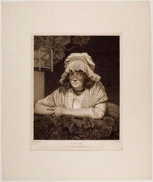Curator: This engraving by William Henry Worthington depicts Hannah More, the renowned religious writer and philanthropist. Editor: She looks rather severe, doesn't she? The high ruffled collar and the bonnet...almost a uniform of piety. Curator: Absolutely! More was a key figure in the late 18th and early 19th century movement promoting religious education among the poor. Editor: So, the quill and inkwell on the table aren't just props; they're symbols of her work, her influence. It’s as if Worthington aimed to capture not just her likeness, but her legacy. Curator: Precisely. And the slightly somber tone perhaps hints at the seriousness of her mission. Editor: It makes you wonder about the weight of those good intentions. An interesting, complex portrait. Curator: Indeed, a face that speaks volumes about a life dedicated to... betterment.