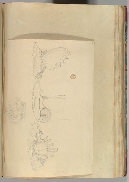 Curator: Welcome. Here we have Reinier Craeyvanger’s "Stalen helm," a drawing dating from 1822 to 1880, housed here at the Rijksmuseum. Editor: It has a light, almost ethereal quality. The delicate pencil work against the toned paper makes the metallic helmet look surprisingly fragile, doesn't it? Curator: Indeed. Consider that helmets, especially elaborate ones like this, weren't just practical. They were potent symbols of power, status, and national identity. In the Netherlands during this period, the military held significant sway in defining civic pride after the Napoleonic era. Editor: The way the light catches certain points—that curve of the crest, the floral rosette—draws the eye and highlights the contrast. Did Craeyvanger make preliminary sketches or did he intend on finishing this illustration? It feels almost dreamlike, with those suggestive lines trailing off. Curator: That’s part of its appeal! Craeyvanger was a master draughtsman. While seemingly incomplete, it demonstrates his process of visualization and the use of suggestion rather than strict depiction. It reveals the layers of artistry beyond just reproduction. Editor: Do you think the lack of strong delineation impacts its symbolism? Does the sketch form, compared to a more polished work, invite a sense of ambiguity regarding military might and its impact on the commoner during those political struggles? Curator: Absolutely. The incomplete nature challenges heroic representation and becomes a commentary on the ever-shifting socio-political sphere of the time. It makes the viewer consider the man inside the helmet, whose purpose is to serve. Editor: It's fascinating how an unfinished sketch opens avenues for reflection that a complete artwork might not. This certainly encourages a deep consideration of symbolic weight and technique. Curator: Indeed, this artwork reminds us how artistic intentions, historical contexts, and art’s fundamental formal elements intersect.