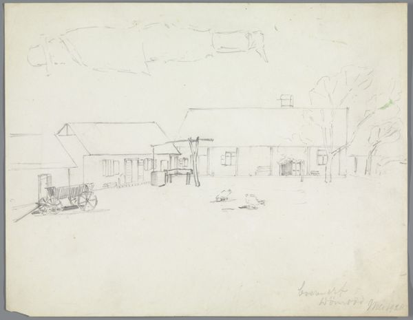 Jozef Israëls created this drawing of figures and a horse-drawn cart on a village street with graphite on paper. The choice of graphite as a medium is significant; it allows for quick, direct marks, suiting the artist’s intent to capture a fleeting impression of everyday life. The simplicity of the material and the sketching process, far removed from the laborious techniques of oil painting, reflect a democratic approach to art-making. The rapid lines and minimal shading suggest a scene observed firsthand, a moment snatched from the routines of rural labor. Look closely and you see the weight of the hay-laden cart, the posture of the figures, and the humble architecture; all rendered with economical strokes, bringing attention to the unsentimental aspects of working-class existence. Israëls' choice to depict this subject matter through a readily accessible medium blurs the line between high art and the quotidian, inviting viewers to find value in the often-overlooked realities of labor and rural life.