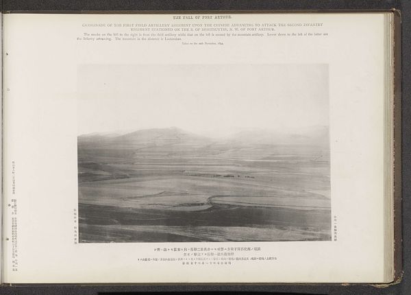 Curator: What strikes me most about this albumen print, “View of the Port Arthur Straits…”, is the inherent tension it embodies. A seemingly innocuous landscape photograph, yet laden with the weight of colonial conflict. Editor: It's interesting, this scene captured by the Ordnance Survey Office around 1894, is quite serene. It's just a black and white photo depicting a landscape and a body of water. What historical context informs your reading of “tension” and “colonial conflict”? Curator: Precisely. This image wasn't created in a vacuum. Port Arthur, now Lüshunkou, was a site of intense geopolitical struggle. This image dates from around the time of the First Sino-Japanese War. The seemingly neutral gaze of the surveyor’s lens is itself a tool of empire. Doesn't the very act of surveying, mapping, and visually documenting this territory become a form of claiming and controlling it? Who do you think this image was created for, and what purpose did it serve? Editor: It seems like the photo, in that sense, presents a particular Western, or colonizing, gaze. So it wasn’t really a photograph documenting some kind of "natural landscape?" It's kind of troubling to look at it now. Curator: Exactly. Its composition and objective style serve to legitimize a particular viewpoint, suppressing other possible narratives and the experiences of the local population. How do we deconstruct the colonial gaze inherent in images like this and give voice to the perspectives that were marginalized or erased? It encourages critical thinking about the relationship between representation, power, and historical context. Editor: It is eye-opening to think of the photograph as participating in historical and political narratives. I would never look at landscape photos the same way again.