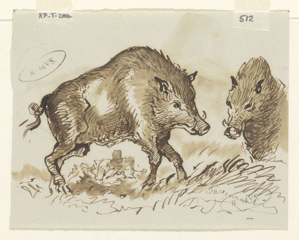 This print, *De vos*, or "The Fox," appears to be some kind of printed illustration. Right away, I notice the earth-tone palette—those browns and greens are doing a lot of work here. It's fascinating how the artist, Gordinne, uses hatching and simple stokes to create textures, like the fox's fur or the thatched roof of the house in the background. Speaking of the fox, check out its posture – it's low to the ground, eyes darting, ready to pounce. There’s a real sense of tension in its body, a feeling like anything could happen in the next moment. This piece reminds me a little of some of the wildlife illustrations by someone like Audubon, but with a more folksy, less scientific feel. You get the sense that it's not necessarily about being accurate, but capturing something about the animal's spirit, its cunning. Art is always this ongoing conversation, with artists riffing off each other across generations.