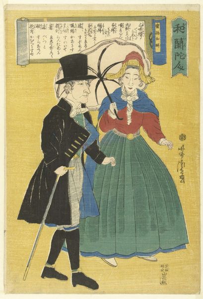Utagawa Yoshikazu’s woodblock print presents us with an image of Americans, observed through a Japanese lens. Dominant is the lady’s parasol, a symbol of status and protection, reminiscent of classical depictions of divine figures sheltered by celestial canopies, and the gentleman’s pipe. Consider how the simple act of smoking, seen here, transforms across cultures. In Dutch Golden Age paintings, a pipe might symbolize fleeting pleasure or vanitas. Yet, the rising smoke is universally evocative, like the smoke from sacrificial fires or the steam from a locomotive, signaling change, transition, and perhaps even disruption. These everyday objects become charged with meaning, reflecting a culture grappling with the unfamiliar. As they are reinterpreted and integrated into new visual narratives, their meanings evolve, echoing the continuous interplay between past and present.