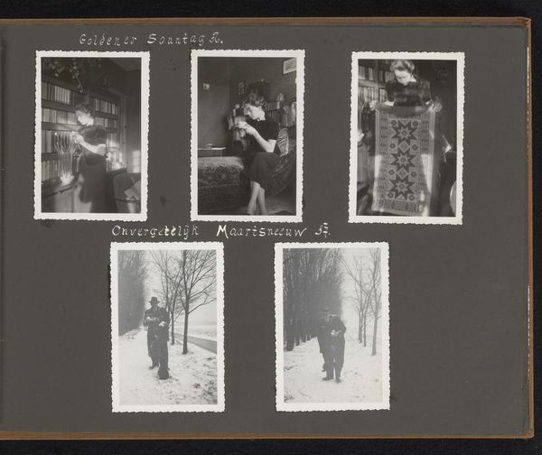 This is a photograph, part of an album, showing the Dutch flag being lowered and the Nazi flag being raised; it was made by an anonymous photographer, at an unknown date. I’m drawn to the textures embedded within this small image, the rough surface of the album page acting as a backdrop to the smooth photographic paper, and the grainy details within each photograph. It reminds me that everything here is mediated, represented. The grey scale gives it a documentary feel, yet the crisp edges of the photos, neatly arranged, suggests someone took care to preserve these images, imbuing them with a personal meaning. There's a stark, unsettling quality to this image. It's not just about the event it depicts, but about the act of witnessing, recording, and remembering. It speaks to how we grapple with history, turning moments of trauma into objects of reflection. It reminds me a little of Gerhard Richter's work, how he used photographs to explore memory and history. Ultimately, this image reminds us that art, even in its simplest forms, can be a powerful tool for understanding our world and ourselves.