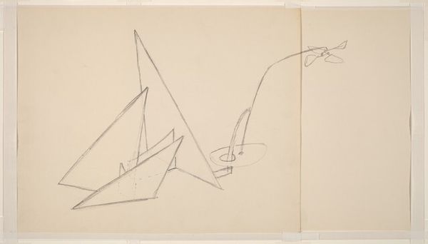 Editor: This untitled ink drawing from 1953 by Ralston Crawford presents such an interesting jumble of geometric forms. There's a striking use of cross-hatching that reminds me a bit of architectural blueprints, yet the shapes feel…incomplete? How do you interpret this work? Curator: What strikes me is how Crawford uses the pen line itself as a carrier of meaning. Lines and hatching can denote shade, depth, but also evoke a kind of industrial or mechanical language. This isn't just about abstracting form; it's about recalling forms that dominate our modern environment. Do you get any sense of location or place from the drawing? Editor: Hmm, maybe… a construction site or perhaps a dockyard? There’s a strong angularity, like metal structures intersecting. The repeated grids create an overwhelming sensation, somewhat unsettling too. Curator: Precisely. The grid is one of the key recurring symbols in modern art. From city planning to the cold, Cartesian coordinates, a world seen as plotted and mechanized. In what ways might this symbolism echo cultural feelings about technology? Editor: Maybe the promise and the dread? The grids speak of human imposition onto a landscape or idea, that imposition becoming quite chaotic and complex here… I appreciate seeing the image now not just as forms on a paper but as a symbol itself. Curator: And remember, symbols aren’t static. Our feelings around the "grid", for instance, will continue evolving, changing how future audiences perceive works like this one. I'm so glad we could unpack its rich and continuous relevance today.