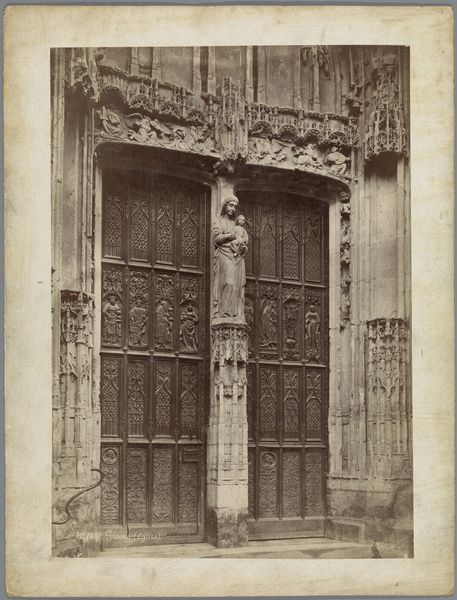 This photograph of the portal of Luxembourg's cathedral was captured by Charles Bernhoeft. The eye is immediately drawn to the intricate stonework framing the cathedral's entrance. The artist uses line, shape, and texture to create a visual hierarchy. Bernhoeft's composition plays with light and shadow. The contrast accentuates the ornate carvings around the doorway. The photograph is not just a recording but also an interpretation. It engages with the semiotics of architectural space, where the cathedral symbolizes religious and cultural authority. The strong vertical lines of the architecture create a sense of grandeur. The smaller human figure standing in the doorway enhances the scale of the building. The play of light across the stone and the careful arrangement of elements invites us to consider how the photograph functions as a cultural signifier. It is a frozen moment that speaks volumes about power, faith, and the artistic interpretation of space.