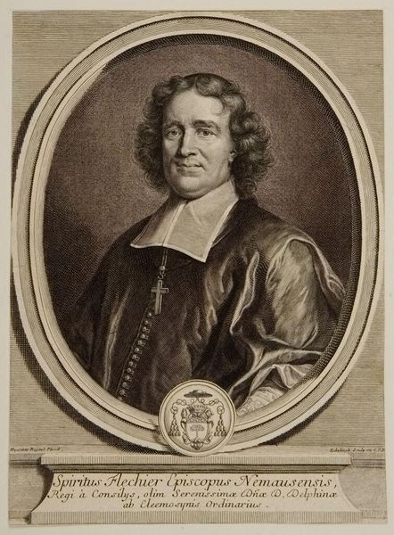 Curator: Here we see Robert Nanteuil’s portrait of Pierre Payen, created sometime during Nanteuil's career, which spanned much of the 17th century. Editor: It's striking, isn’t it? The textures, especially in Payen's robes, suggest a real attention to the weight and drape of the fabric itself. You can almost feel the materiality. Curator: Absolutely. Nanteuil worked during a period of intense religious and political upheaval. Consider Payen’s role within the church—how his identity and position intersected with the power structures of the time. Editor: And look at the precision of the engraving. Nanteuil clearly understood the labor involved. Each line meticulously placed...it speaks to a whole system of production and consumption. Curator: It does invite us to question the accessibility of such images, and how they helped shape societal perceptions of religious figures. Editor: The craft elevates the subject but also renders him into an object, doesn’t it? Curator: True. We gain insight into both the sitter and the social forces at play in that era. Editor: Definitely. It all comes back to the way things are made.