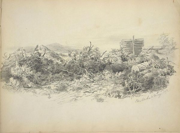 Editor: Here we have John Singer Sargent's watercolor, Landscape with Ruins. It's small, almost intimate, and evokes a sense of faded grandeur. What strikes you about it? Curator: The ruins, rendered so softly, speak volumes about power, loss, and the cyclical nature of history. Think about how Sargent, an American expatriate, engaged with European landscapes. Whose stories are visible and whose are erased in these romanticized ruins? Editor: So you see it as a commentary on colonialism, maybe? Curator: Perhaps. Sargent presents a picturesque scene, yet the very presence of ruins hints at displacement and the erasure of previous inhabitants. What does it mean to aestheticize a landscape marked by historical trauma? Editor: I hadn't considered that perspective. I was just focused on the pretty colors. Curator: Exactly! Art can be beautiful, but it's also a product of its time, embedded in complex social and political contexts. Looking closer reveals those layers.